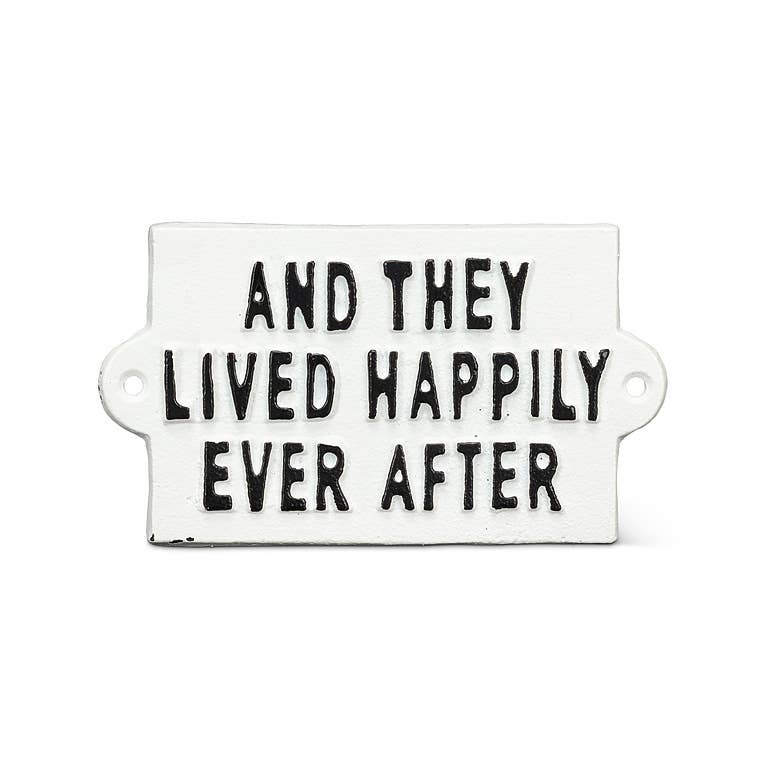 Celebrate love and timeless romance with this cast iron "And They Lived Happily Ever After" sign. Designed in a classic vintage style, this decorative plaque makes a charming addition to any home, wedding decor, or gift for newlyweds.