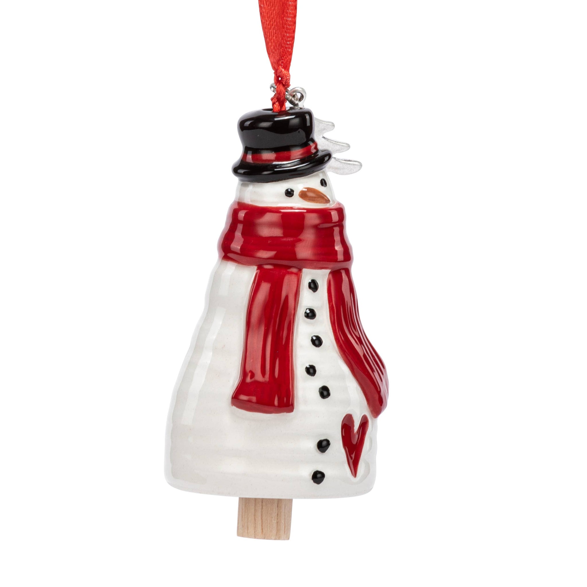 Our Holiday Snowman Mini Bell Ornament brings festive cheer to any décor. Expertly made of ceramic, it showcases a red scarf paired with a black top, red heart and silver-tone tree charm. Packaged in a gift box, our ornament is the perfect addition for your tree or a beautiful gift for anyone on your list.